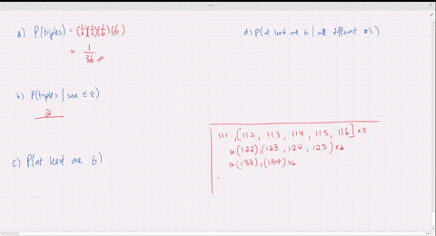 C be the event that the total number of dots showing on. B red die is a 6. The dice are fair all sides are equally likely and the two die rolls are independent.
